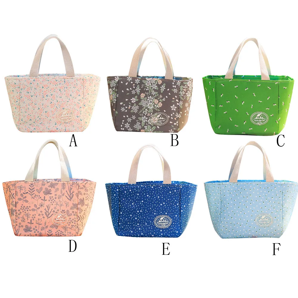 Women's Lunch Bags Mini Handbag Insulation Fiber Printing Ladies Tote Picnic Small Fresh Bag Summer For Family Casual Ootdoors